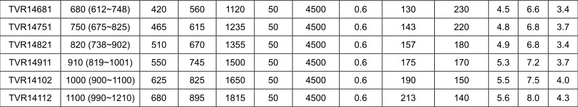 壓敏電阻片徑: Φ14mm 標稱壓敏電壓(@1mADC): 750V(675~825)