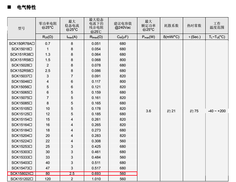 熱敏電阻型號: