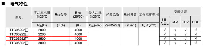 熱敏電阻型號(hào):