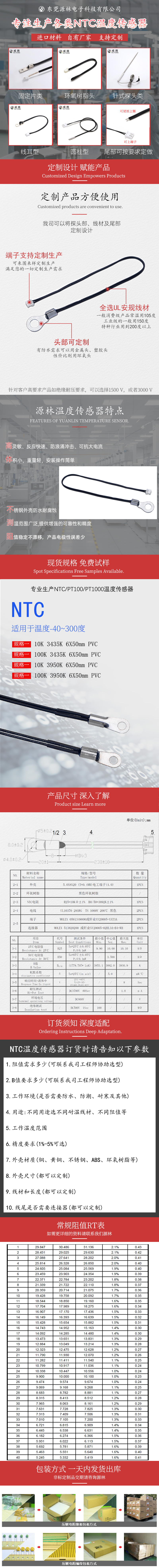 NTC熱敏電阻10K溫度傳感器 耐高溫BMS汽車電池逆變器B值3950